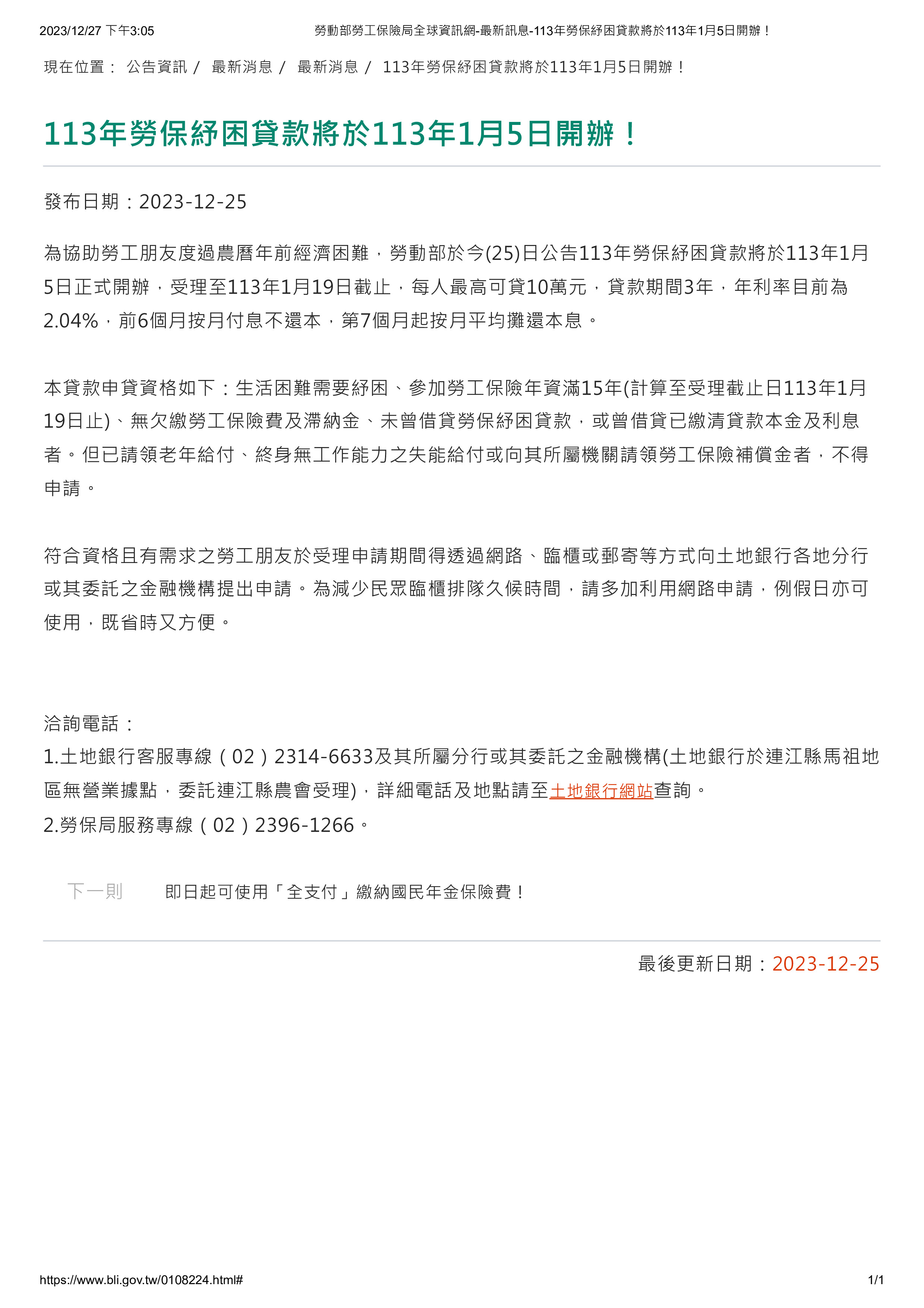 勞動部勞工保險局全球資訊網-最新訊息-114年勞保紓困貸款將於113年12月26日開辦!